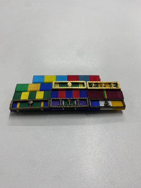 Placa com 5 barretas de medalha militar de TRILHO - fixacao por SUPER-IMÃ ou PINO