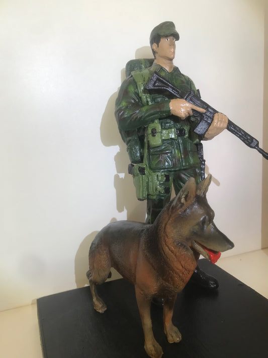 BRINDE: ESTATUETA POLICIA DO EXERCITO MILITAR E CÃO DE GUERRA