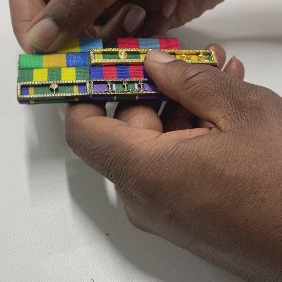 -Placa de 5 barretas de medalha militar de TRILHO - fixação por SUPER-IMÃ ou pino.